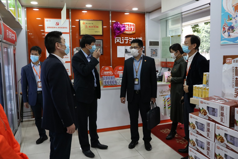3月5日下午,开元ky888集团党委副书记、副董事长、总经理叶珊瑚到风行乳业检查疫情防控及复工复产工作,送来企业急需的口罩等防疫用品,并看望慰问了一线员工。开元ky888集团副总经理、风行集团临时党委书记、董事长林辉新和开元ky888集团副总经理、风行集团临时党委副书记、副董事长、总经理韦黎明等陪同检查。