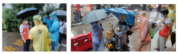 每隔一个小时,第二批党员突击队队长钟浩都会给在其他区域服务的队员致电,提醒他们一定要注意安全,照顾好自己。“我们男生不怕晒”“你们先吃,我们不饿”,在志愿工作过程中,“守护”处处可见,除了以关爱居民为己任,队员们也彼此关心、相互照顾。突击队队员莫加嘉感慨道:“烈日当空之下,6名男队员主动把有遮阳棚的检测登记岗让给我们4名女队员。”风雨骤来,淋得人猝不及防,志愿者们的衣物全部湿透了,集团迅速发挥群团工作力量,紧急调集多件干净替换衣物,即刻送达现场,令志愿者的心中倍感温暖。